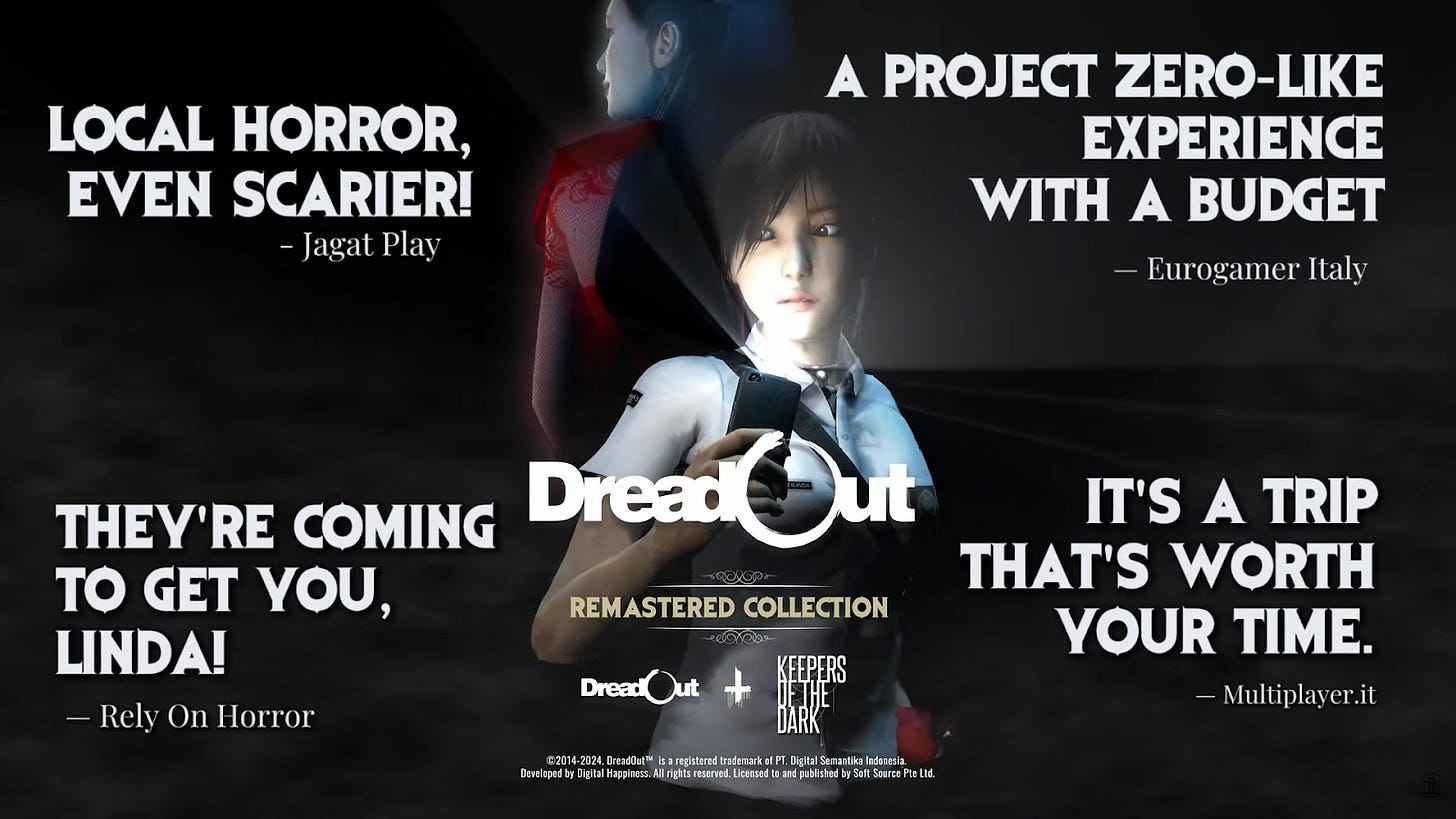 Hai, Player Satu! Kalian pasti sudah ga asing dengan game DreadOut. Salah satu game horror asal Indonesia yang sukses mendobrak pasar internasional pada tahun 2014-2015an. Dan sampai saat ini, Digital Happiness masih aktif mengembangkan cerita dari seri ini dengan merilis satu game sekuel dan satu game spin off.