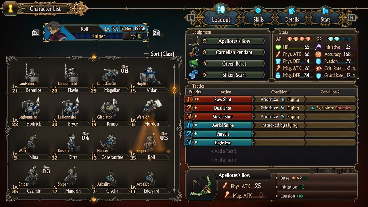 UI list untuk pemilihan karakter ini cukup menjengkelkan terutama jika kita sudah mau menuju tahap terakhir gamenya karena sedikit pembeda antara karakter yang kita recrut dari story mode dan karakter yang kita rectut melaluki kota, jadi bisa kita bayangkan di akhir game ini kita bisa membuka 10 unit yang dimana 1 unit ini maximun kita bisa isi 5 karakter berbeda jadi jika kita mengisi semua karakter ada 50 karakter berbeda dan dengan UI list karakter yang cukup membingunkan ini cukup mempersulit kita untuk memilih milih karakter untuk kita kombinasikan di akhir game.