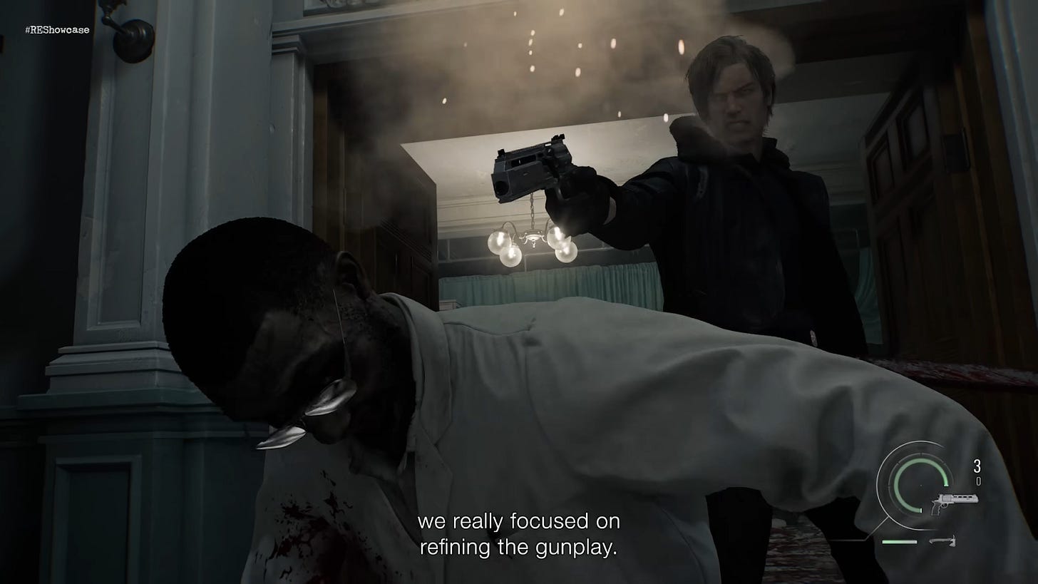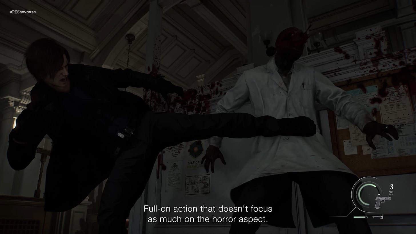 Di showcase ini, kita ditunjukin detail lebih lengkap dari combat kedua protagonist kita Leon dan Grace. Director game ini sendiri, Koshi Nakanishi bilang kalau di game ini kalian akan merasakan seperti bermain dua game berbeda dengan Grace dan Leon.