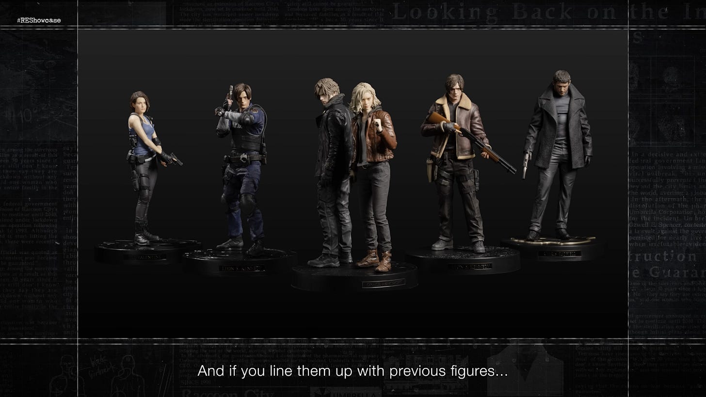 Ada juga beberapa informasi tambahan seperti diumumkan. Pertama dirilisnya scale figur untuk Leon dan Grace yang mana kedua figurnya bisa di display barengan. Figur ini nanti bakal bisa dibeli pada fall tahun ini. Lalu ada juga controller khusus Resident Evil Requiem untuk Pro Controller Nintendo Switch 2 dan akan dirilis pada hari yang sama dengan rilisnya RE Requiem. Dan akan diadakan konser orkestra khusus untuk merayakan 30 tahun frenchise ini.